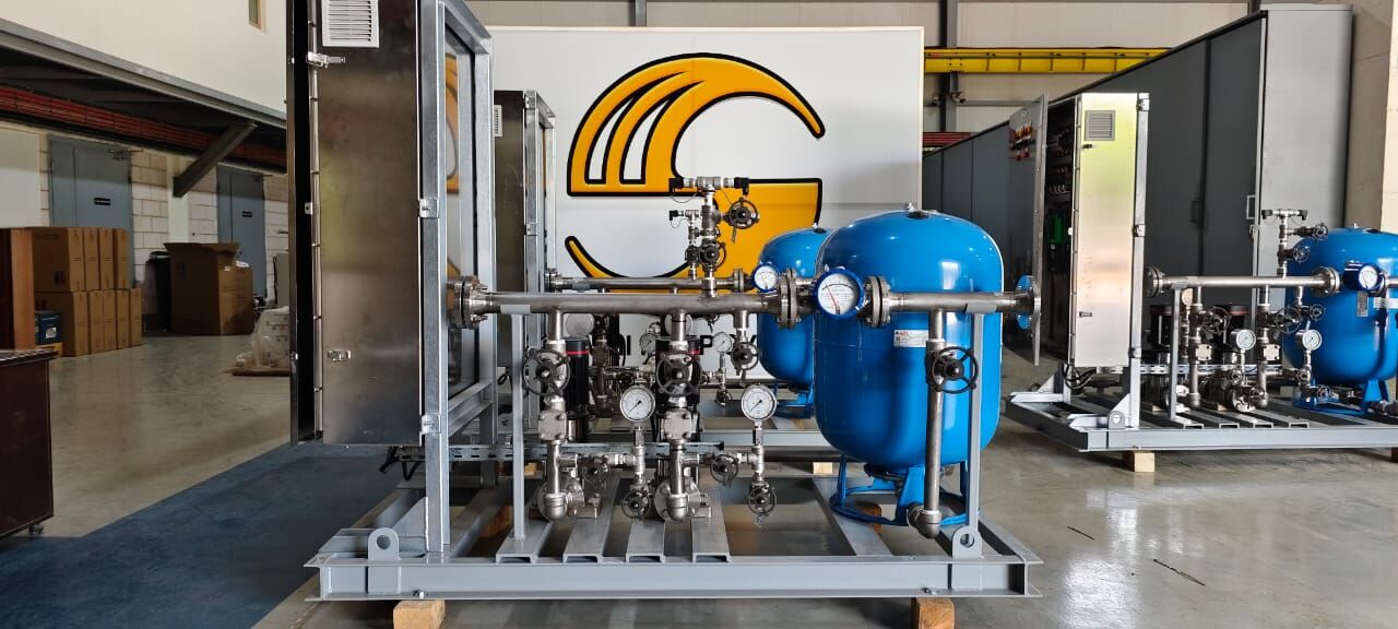 With SRACO: 4× booster skids (duty/standby pumps), VFD panels, pressure tanks, valves, instruments; design → manufacturing → testing → supply.